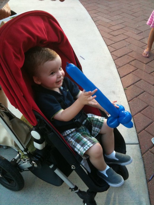 Last night, Hubby and I took Miles out for some partying, dancing, singing, laughing, and all the free balloon animals and face painting you can handle.
